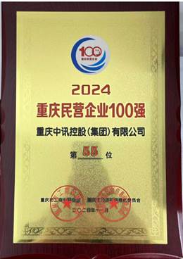 重慶中訊控股(集團)有限公司再次榮膺“2024重慶民營企業(yè)100強”稱號,名列民企100強55位!